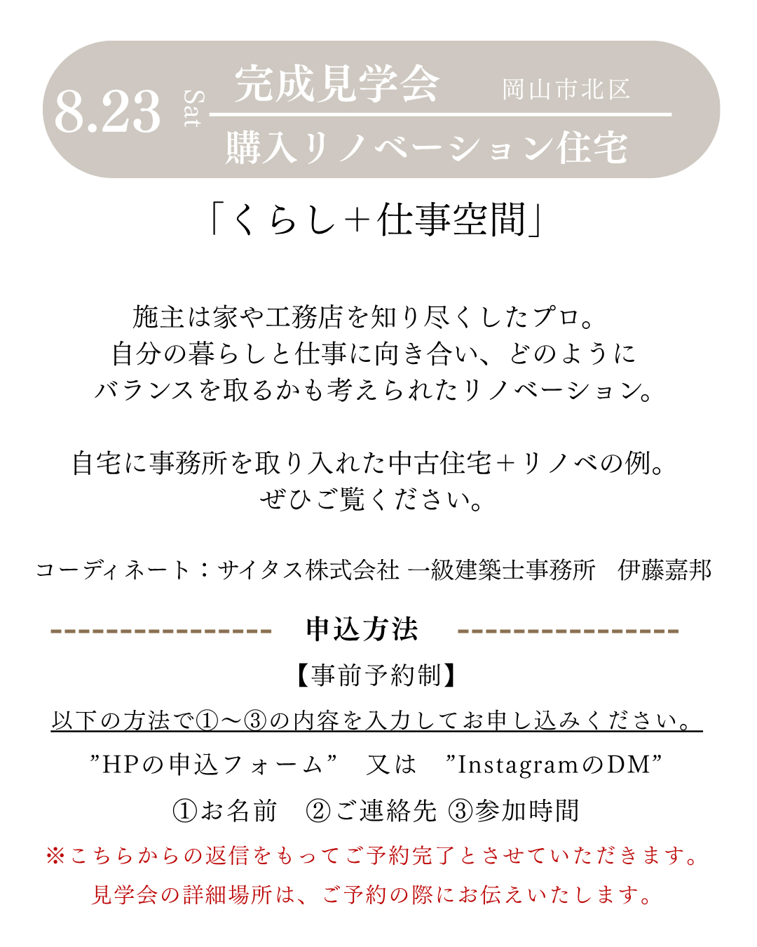完成見学会 購入リノベーション住宅「くらし+仕事空間」