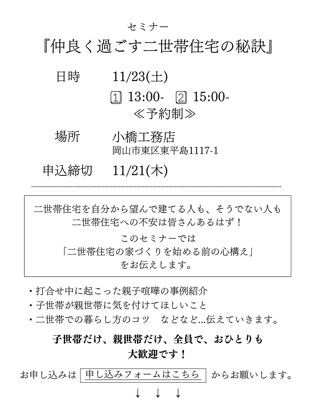 セミナー「仲良く過ごす二世帯住宅の秘訣」